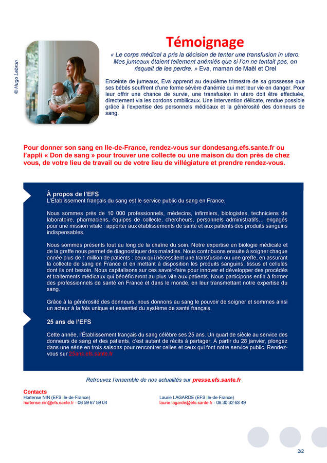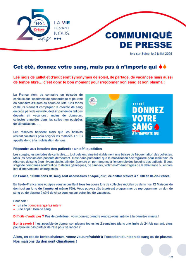 Chaque année, 1 million de malades sont soignés grâce aux dons de sang. Il n'existe pas de produit capable de se substituer aux produits sanguins. Alors, mobilisons-nous !