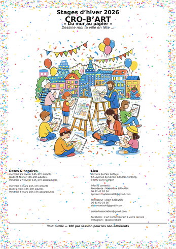 Cro-b'Art a choisi le thème "Du mur au papier", pour la saison culturelle 2025-2026. Dans ce cadre, le projet "Dessine-moi ta ville en fête" vous convie à des ateliers créatifs et ludiques pour tous les âges, que vous soyez débutant ou artiste confirmé.